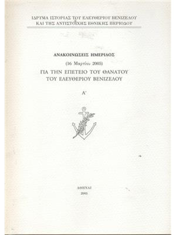 Για την επέτειο του θανάτου του Ελευθερίου Βενιζέλου: ανακοινώσεις ημερίδος (16 Μαρτίου 2005)Για την επέτειο του θανάτου του Ελευθερίου Βενιζέλου: ανακοινώσεις ημερίδος (16 Μαρτίου 2005)..