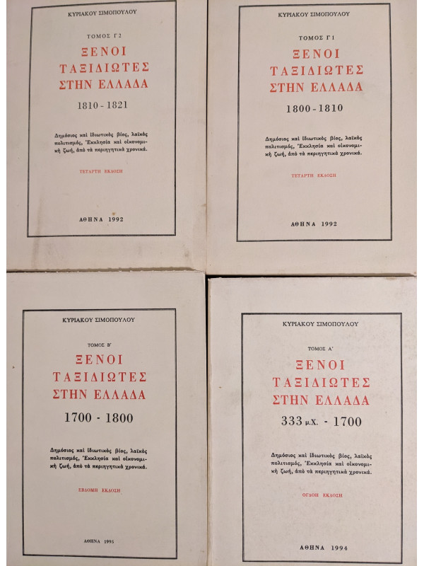 [...] Δεκατέσσερις αιώνες ελληνικής ιστορίας και ζωής καλύπτουν τα κείμενα των περιηγητών που περιλαμβάνονται στον πρώτο τόμο. Από την αφήγηση του Ανώνυμου προσκυνητή που ταξίδεψε στις ελληνικές θάλασσες το 333 μ.Χ., ως το 1700. Από το "Χρονικό του Μπορντώ", ως το "Οδοιπορικό" του Tournefort. Ο δεύτερος τόμος θα περιλάβη τη μελέτη των περιηγητικών κειμένων του ΙΗ΄αιώνα, και ο τρίτος τις αφηγήσεις των ταξιδιωτών της προεπαναστατικής περιόδου. Για τη συγκέντρωση των στοιχείων ερευνήθηκαν χιλιάδες τόμοι περιηγητικών χρονικών, ιστορικών μονογραφιών και άλλων βοηθητικών πηγών. Χρειάσθηκαν χρόνια για την επισήμανση, την αξιολόγηση και την κατάταξη αυτού του πολυποίκιλου, ετερογενούς, πολυφωνικού και άνισου σε ποιότητα και αξιοπιστία υλικού. Τα αποσπάσματα που παρουσιάζονται μεταγλωττισμένα αναφέρονται αποκλειστικά στα ανθρώπινο στοιχείο: στα προβλήματα και στις περιπέτειες του ελληνισμού των βυζαντινών χρόνων και της Τουρκοκρατίας, στην καθημερινή ζωή και στον δημόσιο βίο, στην οικονομία των διαφόρων τόπων, στις κοινωνικές σχέσεις, τα ήθη και έθιμα και γενικώτερα σ ό,τι αποτελεί συμβολή στην ιστορία του έθνους και στο λαϊκό μας πολιτισμό. Γεωγραφικές, τοπογραφικές και αρχαιολογικές πληροφορίες καταχωρούνται μονάχα σε περίπτωση που κρίνονται απαραίτητες για τη διευκρίνηση ενός θέματος, την κατανόηση του πνεύματος ή το φωτισμό του σκηνικού μιας εποχής. [...] (από την εισαγωγή του πρώτου τόμου)