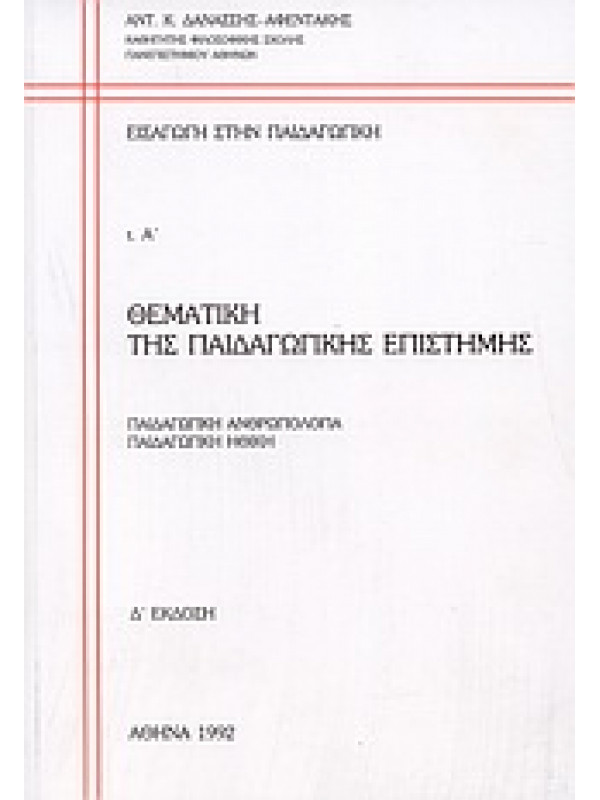 Ανάγκες αναπροσαρμογής και συμπλήρωσης της διδακτέας ύλης, που περιέχεται στο βιβλίο μου θεματική της Παιδαγωγικής επιστήμης, επέβαλαν, σήμερα, επτά χρόνια από την Γ΄ έκδοση (1985) και δέκα επτά χρόνια από την πρώτη έκδοση του (1975), την Δ΄ έκδοση του βιβλίου μου. Στη νέα αυτή έκδοση, το κείμενο παρουσιάζεται με γλωσσική αναπροσαρμογή, αναδιατάσσεται η ύλη, συμπληρώνονται ορισμένες απόψεις και περιλαμβάνονται και νέα κεφάλαια, όπως είναι οι βασικές κατευθύνσεις της Παιδαγωγικής επιστήμης, η μεθοδολογία έρευνας της Παιδαγωγικής, η συμβουλευτική στο σχολείο, το πλατωνικό μοντέλο αρετολογίας του δασκάλου κ.ά. Ανάλογα διαρθρούμενο και συμπληρούμενο και το βιβλίο: "Εξέλιξη της παιδαγωγικής και διδακτικής σκέψης", που θα δει το φως της δημοσιότητας εντός του έτους, ελπίζουμε πως θα αποτελέσουν ένα βασικό έργο Εισαγωγής στην Παιδαγωγική που θα βοηθήσει όχι μόνο τους φοιτητές μας στην παρακολούθηση και τη μελέτη των παραδόσεων μας, αλλά και τους εκπαιδευτικούς και τους γονείς των παιδιών της πατρίδας μας. (από τον πρόλογο της Δ΄ έκδοσης του συγγραφέα)