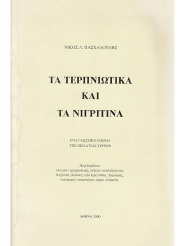 Πασχαλούδης Νίκος Λ. Τα Τερπνιώτικα και τα Νιγριτινά - Ένα γλωσσικό ιδίωμα της Βισαλτίας Σερρών, Πασχαλούδης Νίκος Λ. Τα Τερπνιώτικα και τα Νιγριτινά - Ένα γλωσσικό ιδίωμα της Βισαλτίας Σερρών, Πασχαλούδης Νίκος Λ... Product #: 9789609129206 Regular price: €20.00 €20.00 Σε απόθεμα
