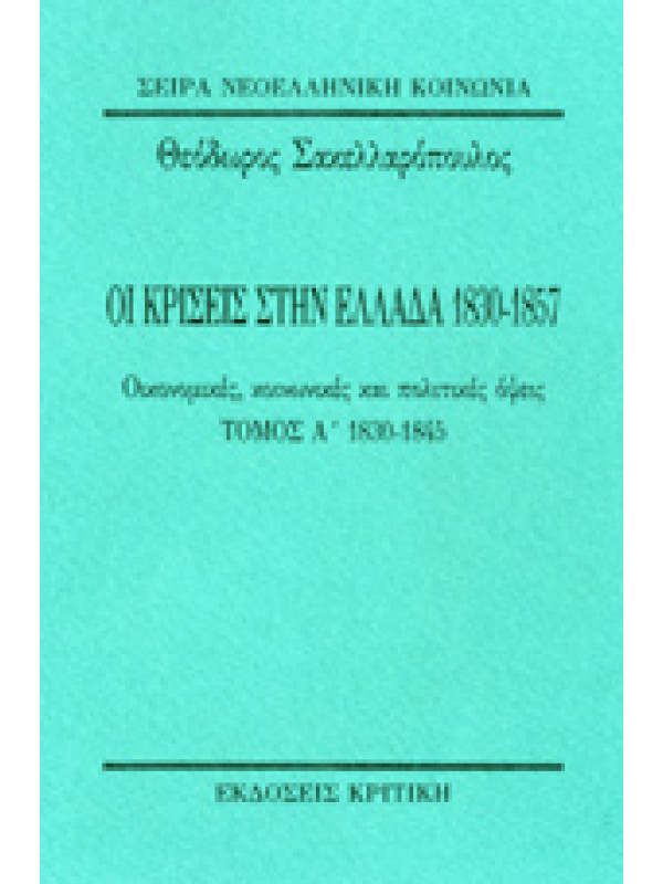 Η παρούσα, δίτομη, μελέτη Οικονομικής και Κοινωνικής Ιστορίας έχει ως αντικείμενο τις οικονομικές κρίσεις παλαιού τύπου στην Ελλάδα του 19ου αιώνα. Επιχειρεί να αποκαλύψει τους οικονομικούς μηχανισμούς και την ιδιόμορφη δυναμική που περικλείει η ελληνική κοινωνία κατά τις πρώτες δεκαετίες συγκρότησής της ως ανεξάρτητου κράτους. Το βασικό ερώτημα που τίθεται στην οικονομική ανάλυση είναι: Υπήρχαν οι προϋποθέσεις για τον οικονομικό εκσυγχρονισμό του νεοελληνικού κράτους; Εάν ναι, σε ποια έκταση; Πώς εκδηλώθηκαν και ποια εμπόδια συνάντησαν; Οι κρίσεις παλαιού τύπου που χαρακτηρίζουν την οικονομική ζωή αυτής της περιόδου, μολονότι σε ορισμένες περιπτώσεις απελευθέρωναν αναπτυξιακό δυναμικό, δεν μπόρεσαν μέσα από τους κλονισμούς και τις ρήξεις στον οικονομικό και κοινωνικό ιστό να ενεργοποιήσουν διαδικασίες υπέρβασης των προκαπιταλιστικών δομών και επενδυτικών στρατηγικών. Κοινωνία και πολιτική παρέμειναν καθηλωμένες σε παραδοσιακές νοοτροπίες και πρακτικές, που αποτελούσαν τελικά προέκταση αλλά και έκφραση μιας αγροτικής, ελάχιστα εκχρηματισμένης, οικονομίας. (...) (Από τον πρόλογο της έκδοσης)