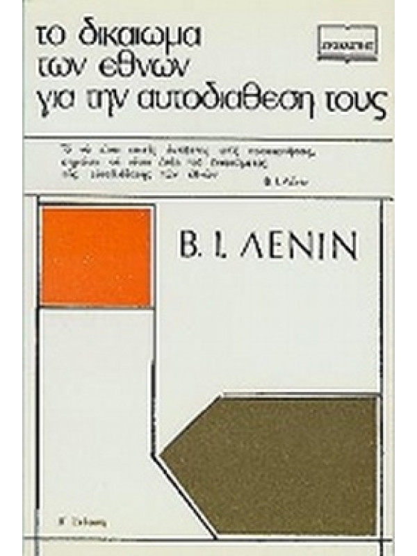 Lenin Vladimir Illic Το δικαίωμα των εθνών για την αυτοδιάθεσή τους, Vladimir I. Lenin Το δικαίωμα των εθνών για την αυτοδιάθεσή τους, Vladimir I. Lenin.. Product #: 9788883839528 Regular price: €5.00 €5.00 Σε απόθεμα