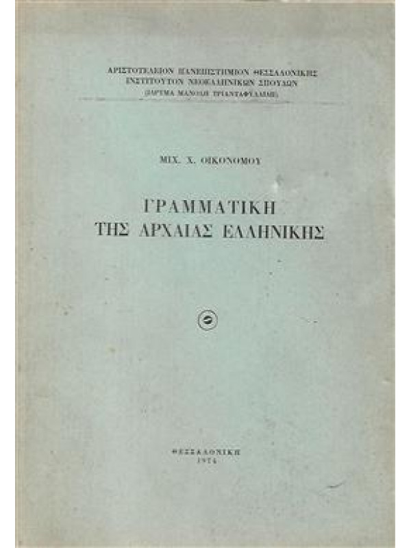 Οικονόμου Μιχαήλ Χ Γραμματική της αρχαίας ελληνικής,Οικονόμου Μιχαήλ Χ Γραμματική της αρχαίας ελληνικής.. Product #: 9788888948867 Regular price: €15.00 €15.00 Σε απόθεμα
