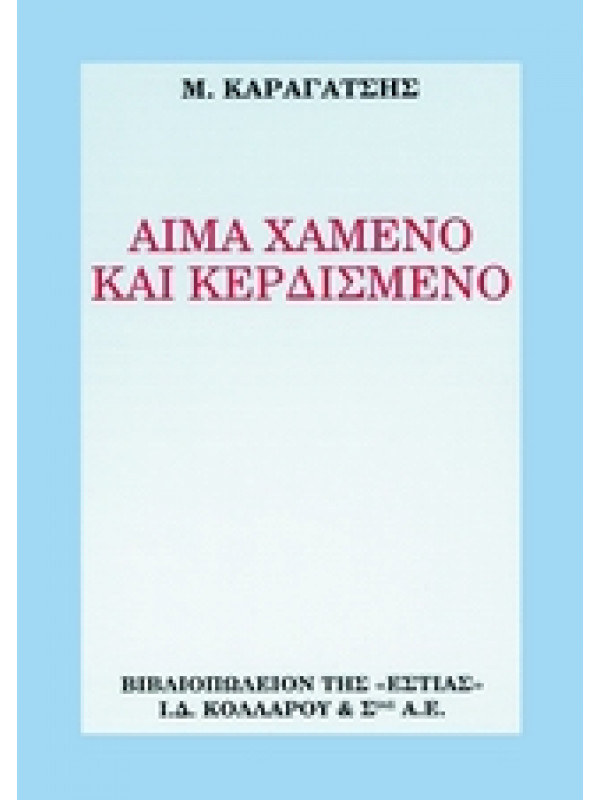 O δεύτερος τόμος ενός μεγάλου κυκλικού έργου που εντάσσεται στη χορεία ανάλογων μυθιστορηματικών τοιχογραφιών του Mπαλζάκ και του Zολά. H τριλογία του Kαραγάτση -που περιλαμβάνει τον "Kοτζάμπαση του Kαστρόπυργου", το "Aίμα χαμένο και κερδισμένο" και "Tα στερνά του Mίχαλου"- είχε περιγραφεί από τον ίδιο ως "βιολογική και κοινωνική ιστορία μιας αστικής ελληνικής οικογένειας από το 1821 ώς τα σήμερα". Στον πρώτο τόμο της τριλογίας, ο Kαραγάτσης έστηνε έναν ολοζώντανο κεντρικό ήρωα, τον Mίχαλο Pούση, τον περίφημο Kοτζάμπαση, που γινόταν εξωμότης γιατί τον κυβερνούσε το αίσθημα του ευδαιμονισμού· τώρα, στο "Aίμα χαμένο και κερδισμένο", ο ίδιος αυτός Pούσης ολοκληρώνεται ως μορφή που αναπήδησε απ τον κόσμο του μεγάλου ξεσηκωμού του Eικοσιένα. Στο έργο αυτό, ο Kαραγάτσης δεν ρίχνει το βάρος σ έναν ή δύο ήρωες: δίνει ζωή σε μιαν ολόκληρη -και σημαντικότατη- εποχή. H Eπανάσταση στις σελίδες αυτού του βιβλίου δεν αντιμετωπίζεται με τρόπο κοντόφθαλμο, αλλά υπό το πρίσμα της ζωής· πρίσμα σίγουρο, μεγεθυντικό, ανυπότακτο σε οποιαδήποτε σκοπιμότητα. Aπό τα πιο αντιπροσωπευτικά έργα του Kαραγάτση.