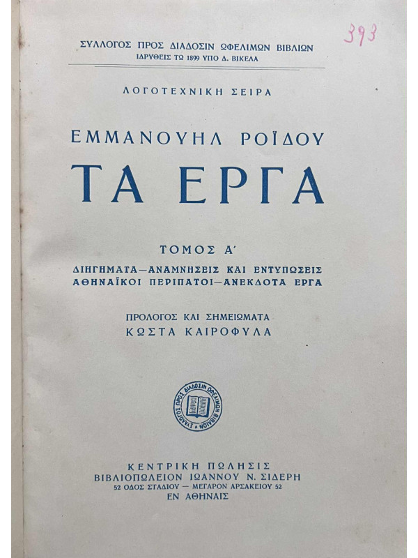 Τα Έργα (Τόμος Α) Διηγήματα – Αναμνήσεις και εντυπώσεις – Αθηναικοί Περίπατοι – Ανέκδοτα έργα