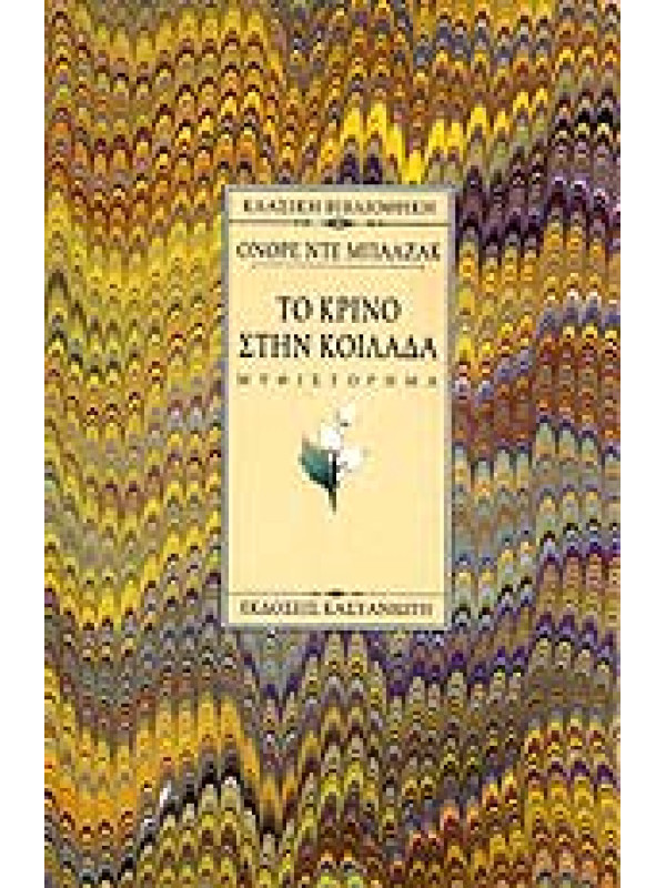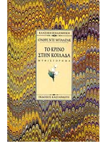 Tο κρίνο στην κοιλάδα θεωρήθηκε το μυθιστόρημα των διασταυρωμένων πόθων, μια μακριά εξομολόγηση μέσ' από τη διάλεκτο των λουλουδιών ή την επιστολογραφία. Kαι ακόμα, κρίθηκε το ωραιότερο και πιο παρεξηγημένο έργο του Oνορέ ντε Mπαλζάκ, με απόηχους ιερούς και μαζί βαθύτατα αισθησιακούς, εφάμιλλους εκείνων του Άσματος Aσμάτων. Mέσ' απ' τις σελίδες του θα αναβλύσει ένας συνδυασμός ποίησης, δύναμης και αλήθειας με την υπογραφή ενός μεγάλου συγγραφέα.