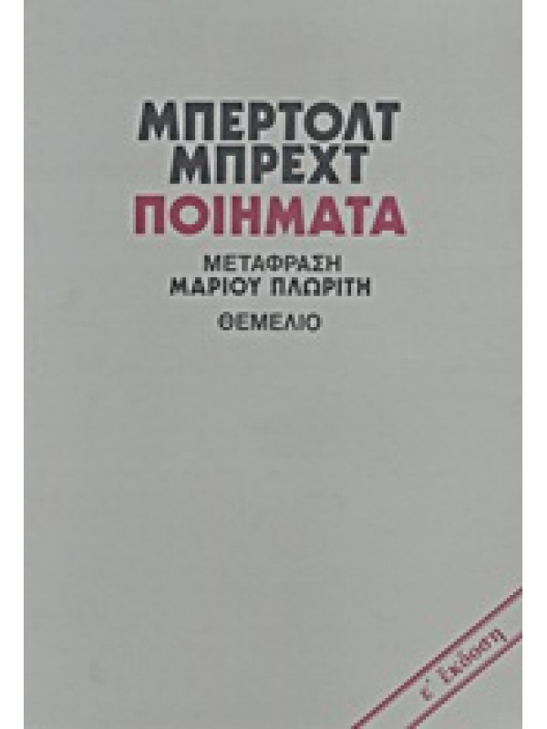 [...] Οι μεταφράσεις που δημοσιεύονται εδώ -άλλες παλιότερες κι άλλες πρόσφατες- χωρίστηκαν σε πέντε μέρη, με βάση τον τόπο γραφής των ποιημάτων. Γιατί οι διάφορες μετοικεσίες και περιπλανήσεις του Μπρεχτ -απ τη βαυαρική γενέτειρά του στο μεσοπολεμικό, προ-χιτλερικό Βερολίνο, απ τη χιτλερόβλητη πατρίδα του στην οδύσσεια της εξορίας, κι απ την απόγνωση της ξενιτιάς στον ελπιδοφόρο γυρισμό- αντιστοιχούν σ άλλες τόσες στροφές της πνευματικής πορείας του ποιητή.