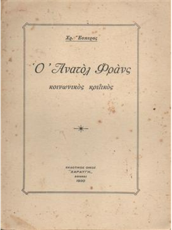 Έσπερας Χρ. Ο Ανατόλ Φράνς κοινωνικός κριτικός,Έσπερας Χρ. Ο Ανατόλ Φράνς κοινωνικός κριτικός.. Product #: 9788888931890 Regular price: €10.00 €10.00 Σε απόθεμα