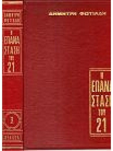 Τόμοι 4 Διαβάζοντας την "Επανάσταση του 21" του Δημήτρη Φωτιάδη ζούμε στιγμή με στιγμή τους ηρωισμούς, το μεγαλείο, την αυταπάρνηση, το ολοκαύτωμα του λαού μας, αλλά και τις λιποψυχίες, τις μικρότητες, τους μικροϋπολογισμούς και τις προδοσίες ορισμένων πρωταγωνιστών της. Μας κάνει ν αναπνέουμε δύσκολα ο συγγραφέας παρακολουθώντας μέσα από τις ζωντανές σελίδες του το ασφυκτικό αγκάλιασμα των μεγάλων δυνάμεων, έτοιμες να τραβήξουν τη θηλειά και να πνίξουν τον αγώνα του λαού μας για την εθνική του λευτεριά και ανεξαρτησία.Το έργο αυτό του Δ. Φωτιάδη βγαλμένο μέσα από την ιστορική αλήθεια, καρπός μακρόχρονης εξαντλητικής έρευνας και μελέτης, θα μπορούσε να ονομασθεί "Η αλήθεια για το 21". Με την πεποίθηση λοιπόν ότι δίνουμε στο Ελληνικό αναγνωστικό κοινό την αληθινή του ιστορία, θα προσπαθήσουμε να την κάνουμε κτήμα του Ελληνικού λαού για τον οποίο γράφτηκε και του ανήκει