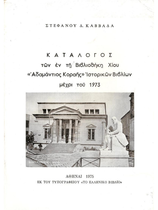 Καββαδάς Στέφανος Δ.Κατάλογος των εν τη Βιβλιοθήκη Χίου «Αδαμάντιος Κοραής»Ιστορικών βιβλίων μέχρι του 1973, Καββαδάς Στέφανος Δ.Κατάλογος των εν τη Βιβλιοθήκη Χίου «Αδαμάντιος Κοραής»Ιστορικών βιβλίων μέχρι του 1973, Καββαδάς Στ..