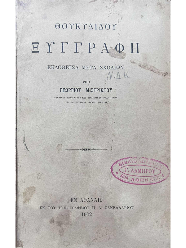 Εκδιδόμενο με σχόλια και με εισαγωγή του Μιστριώτη Γεώργιου, τακτικού καθηγητή των Ελληνικών Γραμμάτων του Εθνικού Πανεπιστημίου